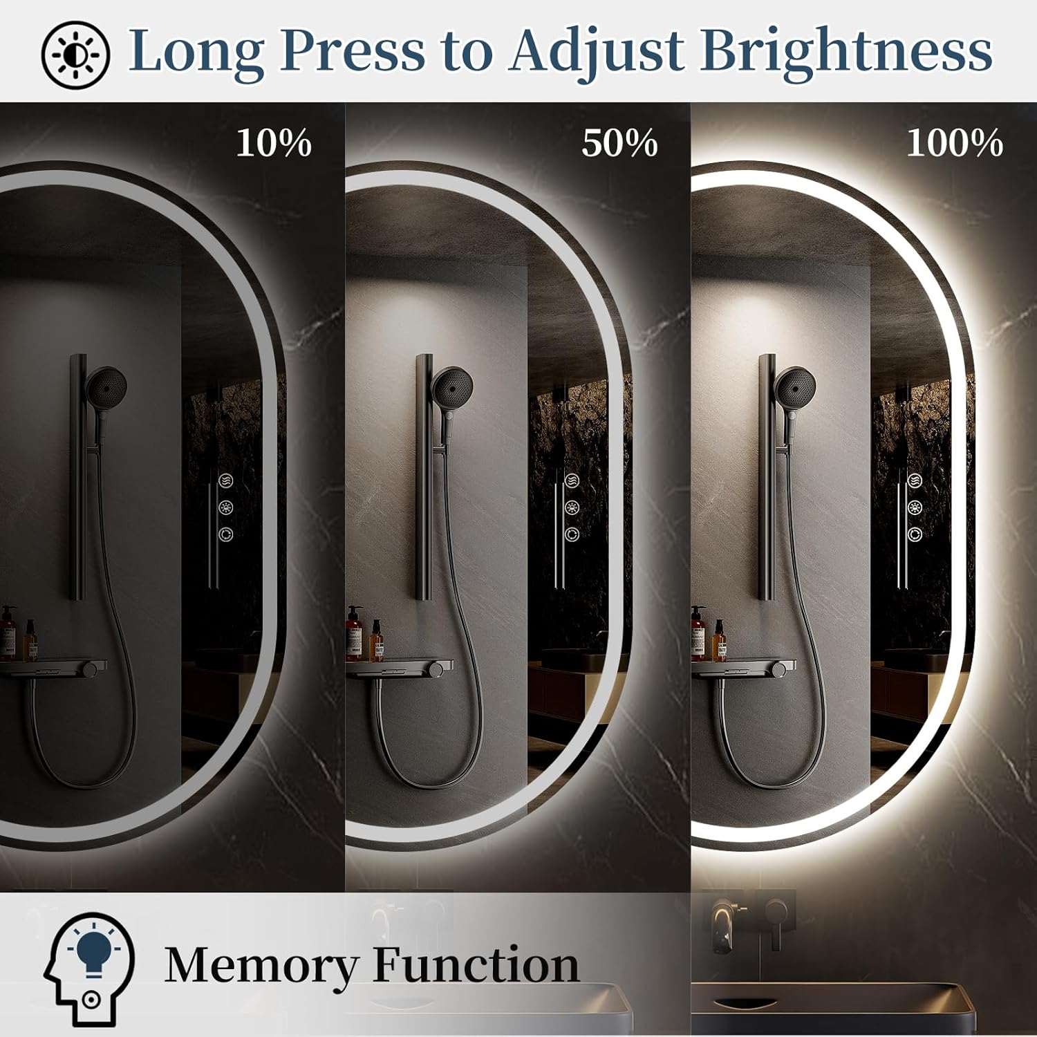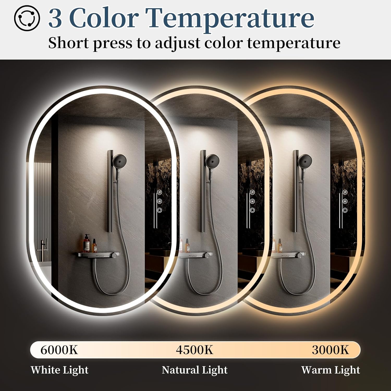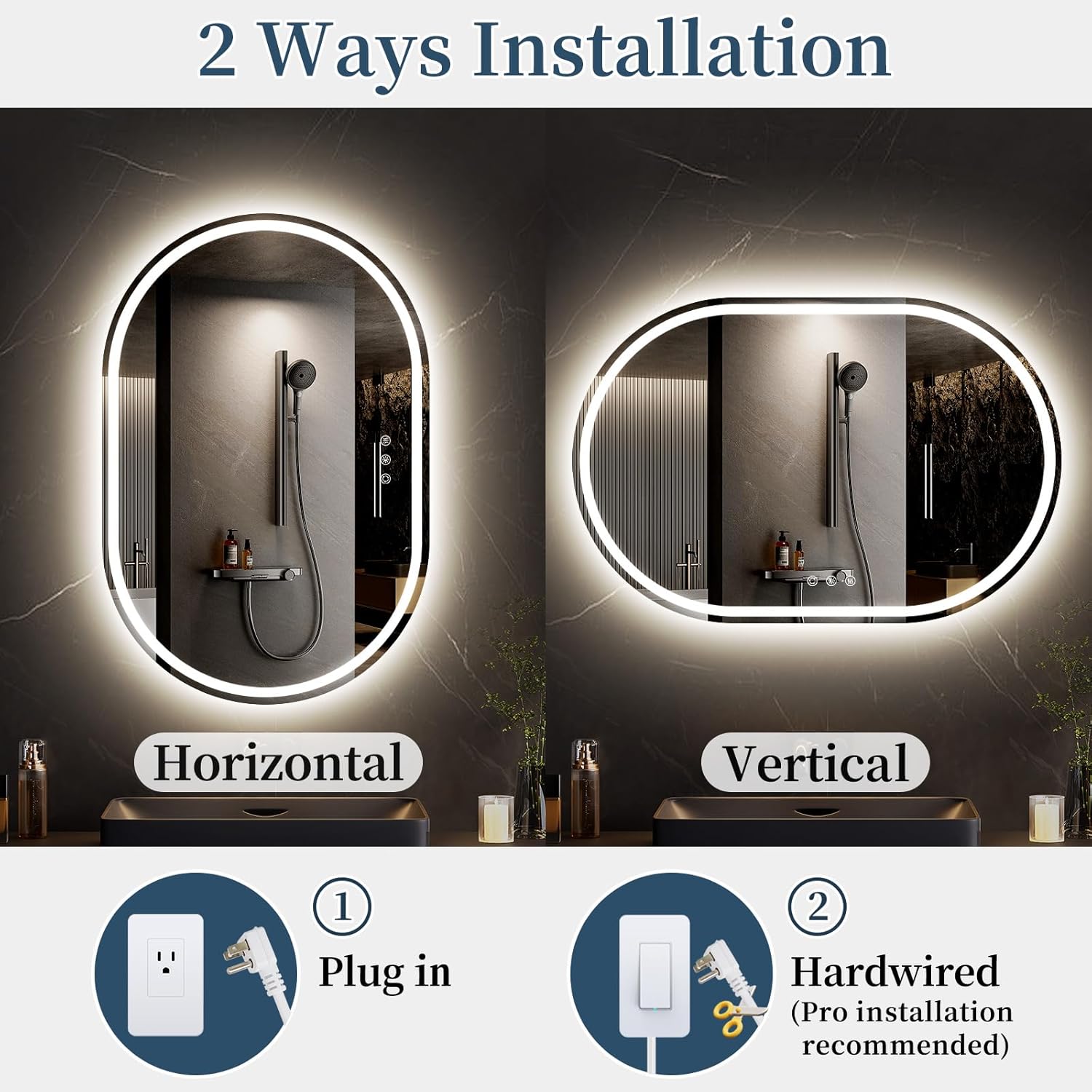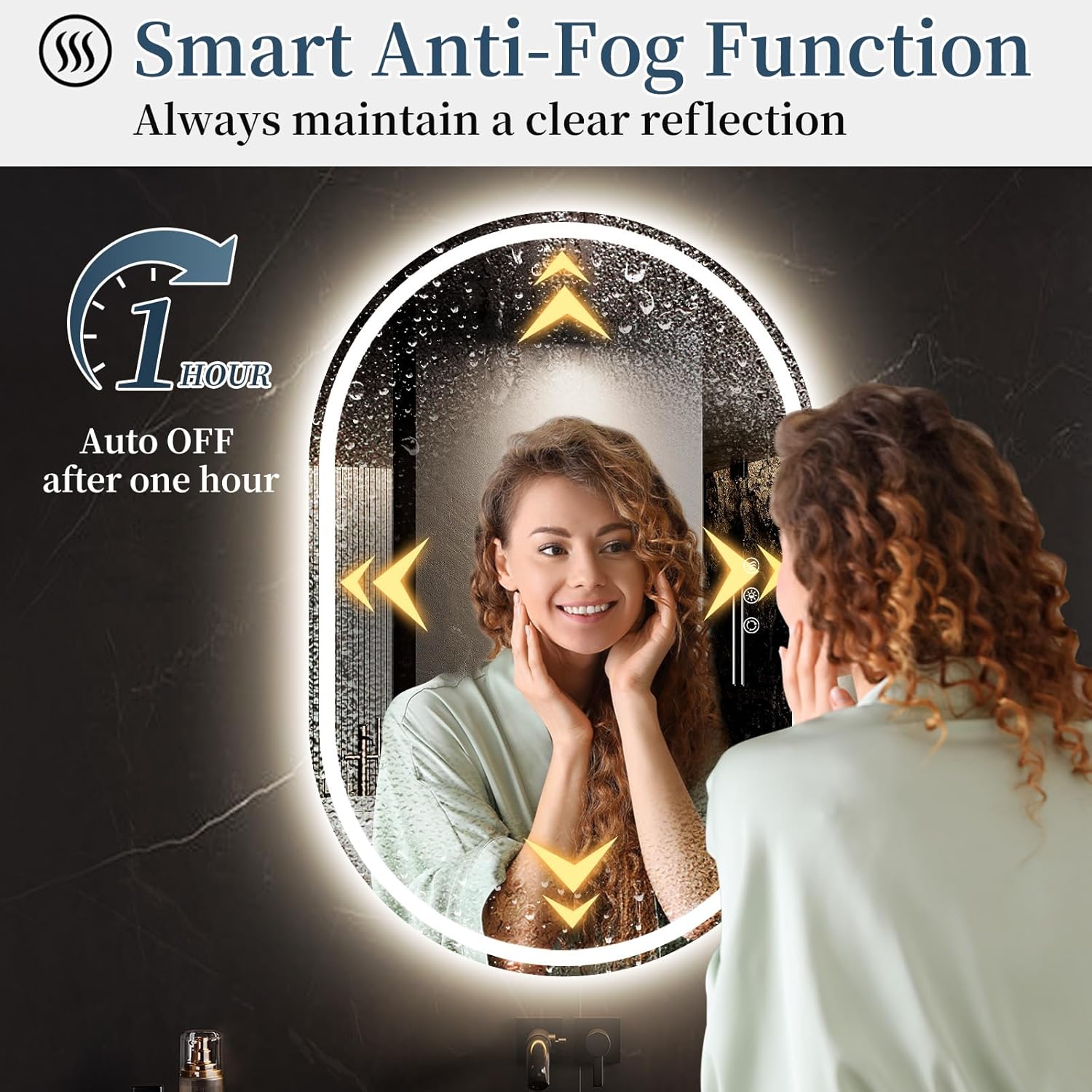 SANIF® LED Bathroom Mirror with Lights, Anti Fog Lighted Vanity Mirror Wall Mounted, Stepless Dimmable LED Oval Mirror, Memory, Front/Backlit, Horizontal/Vertical S-8